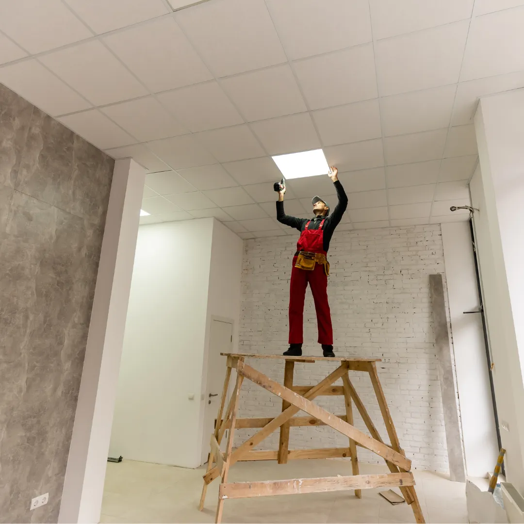 We install professional suspended ceiling systems for both commercial and residential applications. These ceilings are perfect for offices, basements, retail spaces, and renovation projects, offering clean lines, easy access to utilities, and a polished professional finish.